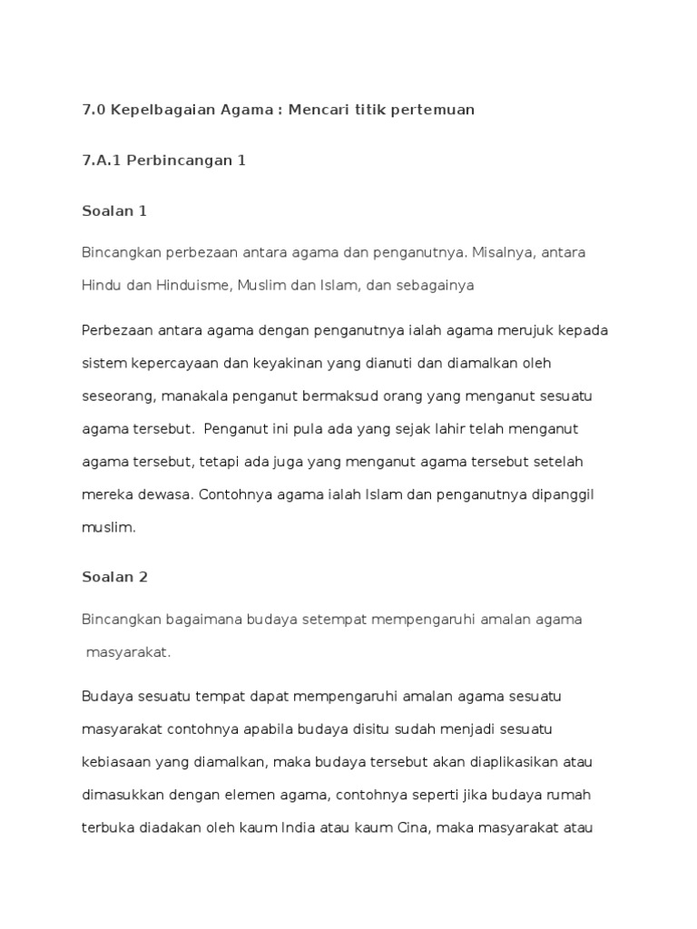 Bincangkan bagaimana budaya setempat mempengaruhi amalan agama masyarakat. Kini tarian rabbani wahed ditampilkan sebagai warisan budaya dan dibuatkan film dokumenter oleh komunitas pecinta film dokumenter aceh sebagai upaya pelestarian budaya. Budaya sesuatu tempat dapat mempengaruhi amalan agama sesuatu masyarakat contohnya apabila budaya disitu sudah menjadi sesuatu kebiasaan yang diamalkan, maka budaya tersebut. Sebelum islam masuk dan berkembang, indonesia sudah memiliki corak kebudayaan yang dipengaruhi oleh agama hindu dan budha. Sebagai masyarakat yang masih sederhana, wajar bila nampak bahwa sistem animisme dan dinamisme merupakan inti kebudayaan yang mewarnai seluruh aktivitas kehidupan masyarakatnya. Tepatnya surat yusuf ayat 4 serta surat yasin ayat 36. Kekuatan apa yang mempengaruhi penciptaan suatu budaya? Bagaimana modernisasi memengaruhi budaya masyarakat kita? Modernisasi memang telah memengaruhi gaya hidup masyarakat kita. Tradisi merupakan warisan budaya dan peristiwa sosial kemasyarakatan. Pendidikan moral tahun 5 : Sementara agama adalah sistem yang mengatur kepercayaan kepada tuhan, serta tata kaidah yang berhubungan dengan budaya dan tatanan kehidupan manusia. Agama merupakan regulasi ilahiyah yang meluruskan jalan hidup seorang insan.