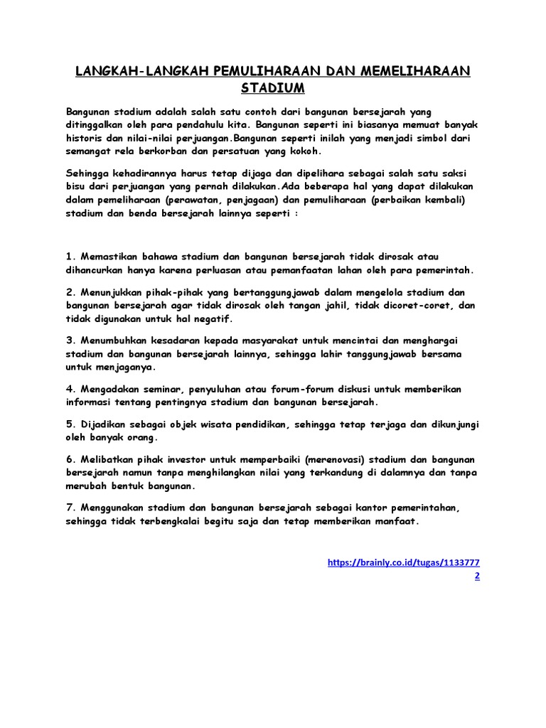 (f) membuat rumusan (g) menyenaraikan sumber rujukan. Mohd zailan, endin (2008) pemeliharaan dan pemuliharaan bahan di perpustakaan universiti malaya (pum) : Memastikan bahwa stadium dan bangunan bersejarah tidak dirusak atau dihancurkan hanya karena perluasan atau pemanfaatan lahan oleh para pemerintah. It will be marvelous if there more about pemeliharaan dan pemuliharaan bangunan bersejarah. Apakah langkah langkah pemeliharaan dan pemuliharaan stadium colosseum?.